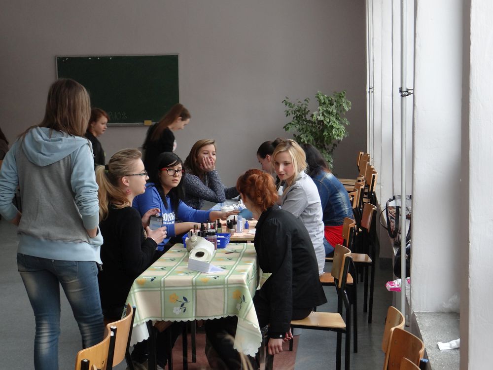 Dzień Kobiet i nadchodząca wiosna stały się świetnym pretekstem aby w naszej szkole zorganizować festyn zdrowia i urody. Na taki pomysł wpadła Justyna Piekarska z II TUG – wspólnie z opiekunami Panią Dorotą Karolak, Wioletą Gabarą i Panem Sebastianem Kozickim. 6 marca niektóre sale lekcyjne stały się miejscem spotkań u kosmetyczki czy wizażystki. Kobiety naszej szkoły mogły za symboliczną złotówkę pomalować również paznokcie. Na świetlicy dzięki życzliwości Pani Pielęgniarki – każdy chętny mógł sobie zmierzyć ciśnienie krwi i poziom cukru, a Pani Danuta Łobodzińska przeprowadziła pomiary składu masy ciała, wskaźnika BMI i poziomu uwodnienia organizmu.