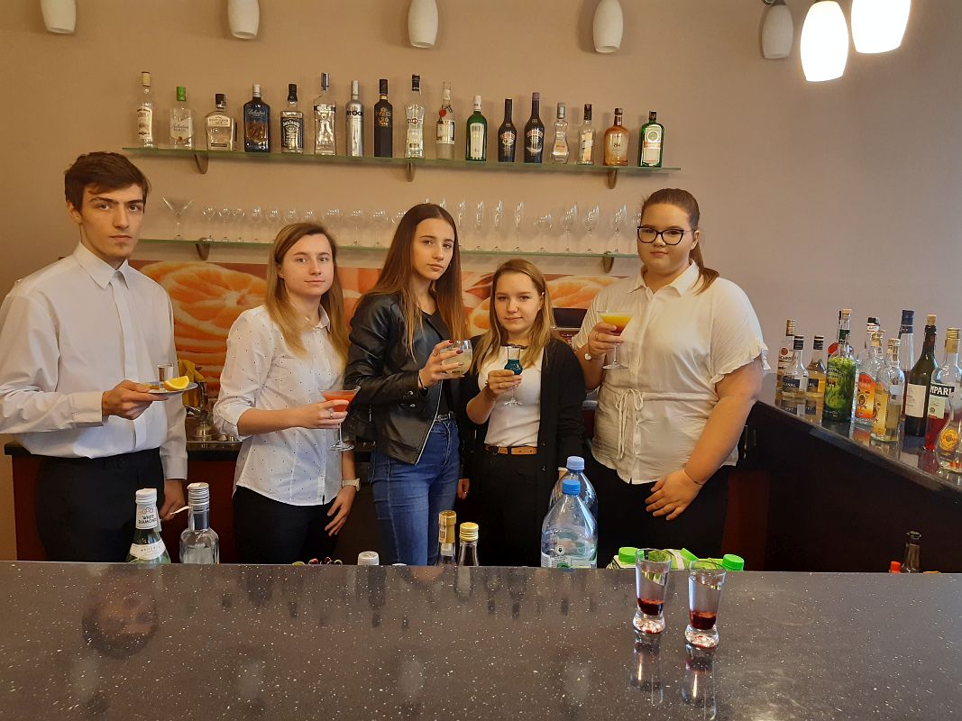 W ramach odbywającego się w naszej szkole projektu Z Cezakiem w zawodową przyszłość, dofinansowanego ze środków Unii Europejskiej (w ramach Europejskiego Funduszu Społecznego Oś Priorytetowa XI Edukacja, Kwalifikacje, Umiejętności, Poddziałanie XI.3.1 Kształcenie zawodowe), zostały przeprowadzone kursy kelnerskie i barmańskie. Podczas zajęć uczniowie mieli możliwość zwiększenia swojej wiedzy i nabycia nowych umiejętności z zakresu obsługi konsumenta, rodzajów bankietów i serwisów oraz rodzajów alkoholi i sposobów miksowania drinków. W miniony weekend uczniowie przystąpili do egzaminów, które zakończyły się dla wszystkich pozytywnie. Zdobyte kwalifikacje można wykorzystać w przyszłości, co ułatwi lepszy zawodowy start. Na zakończenie projektu wszyscy uczniowie otrzymają certyfikaty zdobytych umiejętności w zawodach kelner i barman.