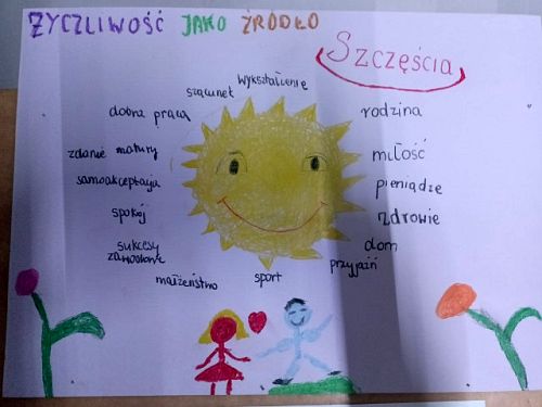 W naszej szkole październik został ogłoszony miesiącem zdrowia psychicznego. W związku z tym przeprowadziliśmy liczne akcje, ukierunkowane na ten jakże ważny element naszego życia. Wśród nich znalazły się m.in. warsztaty ze specjalistami z zakresu psychologii, bezpieczeństwa i zdrowia. Jako że muzyka łagodzi obyczaje, w środy nasi uczniowie prezentowali podczas przerw utwory z różnych gatunków muzycznych; odbył się też koncert rockowy, któremu przewodził profesor Jarosław Głowiński. W ramach integracji klasowej oraz wzmocnienia więzi między uczniami ogłosiliśmy konkurs pod hasłem Życzliwość jako źródło szczęścia. Efekty wspólnej pracy można było oglądać w głównym korytarzu. Kierując się maksymą: w zdrowym ciele zdrowy duch, zorganizowaliśmy zajęcia z jogi oraz emocjonujący mecz piłki koszykowej nauczycieli z uczniami. Przez cały okres trwania akcji na korytarzu stała „skrzynia życzliwości”, do której każdy mógł wrzucić kilka serdecznych słów, skierowanych do drugiego człowieka.