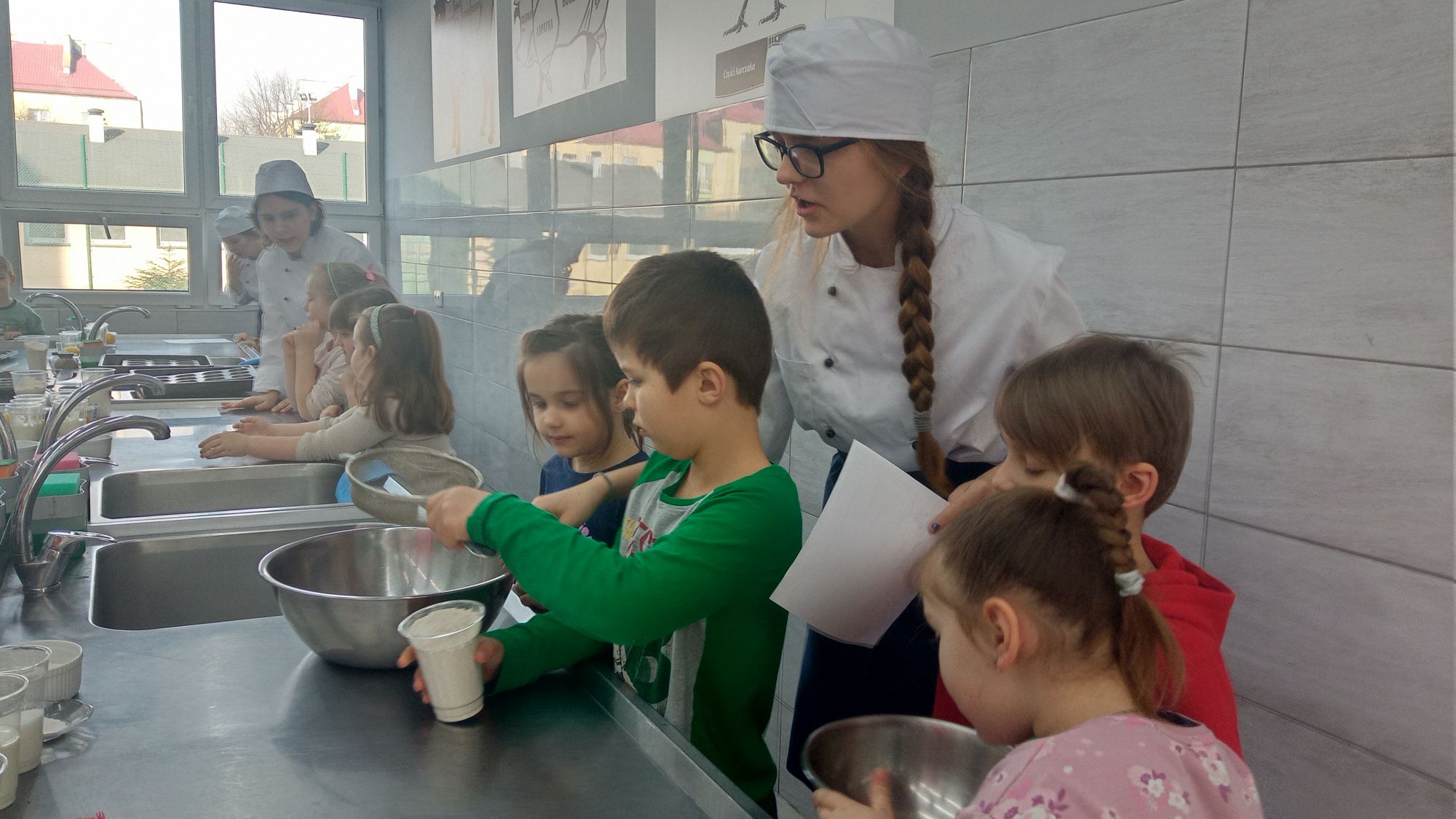 15 marca w Zespole Szkół nr 1 odbyły się warsztaty kulinarne dla przedszkolaków. Chcemy zarażać swoją pasją do gotowania już najmłodszych, dlatego zaprosiliśmy do naszej pracowni gastronomicznej dzieci ze zgierskiego Przedszkola nr 8. Pod okiem Pani Sylwii Karlikowskiej maluchy uczestniczyły w przygotowaniu babeczek z mascarpone i kruszonką. W pieczeniu pomagali uczniowie klasy I T. Mamy nadzieję, że praktyczna nauka była również świetną zabawą – zarówno dla naszej młodzieży, jak i dla przedszkolaków.