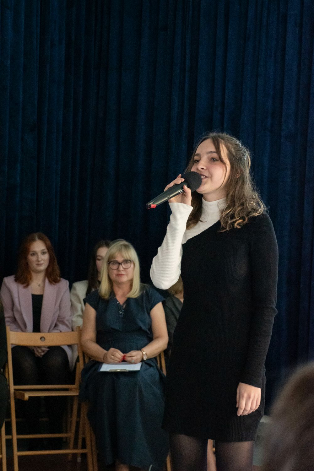 Zanim pan dyrektor Piotr Matusiak zaprosił gości do skosztowania potraw przygotowanych przez młodzież Zespołu Szkół nr 1, inni uczniowie mieli możliwość uatrakcyjnienia święta popisami wokalnymi i recytacją poezji. Ich zadaniem było skłonienie widowni do refleksji nad wyzwaniami i odpowiedzialnością „ludzi edukacji”, kształtowaniem etyki młodych, ale przede wszystkim do zademonstrowania swojej radości, młodzieńczego uroku i entuzjazmu. Czy to się udało? Zapytajcie tych, którzy byli świadkami występu Weroniki Wiśniewskiej, Antoniny Witkosz, Wiktorii Pinkowskiej, Julii Podsiad, Kingi Kicińskiej i Kuby Kluski.