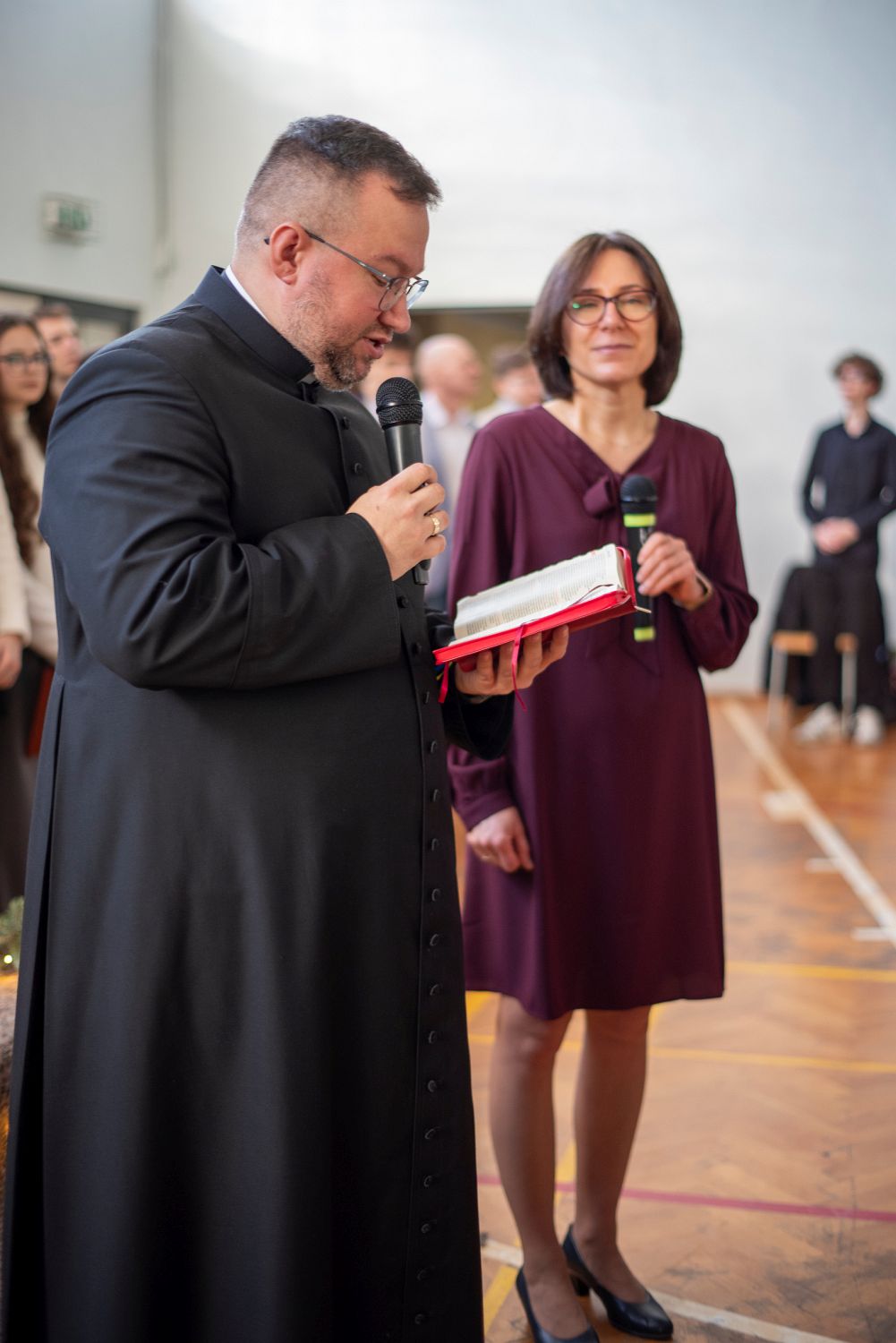 Spotkanie wigilijne zorganizowane dla społeczności „Cezaka” było wyjątkowym czasem zatrzymania się i wspólnej refleksji nad sensem Świąt Bożego Narodzenia. Tegoroczne rozważania w szczególny sposób skupiły się na opłatku – jego historii, symbolice oraz tradycji dzielenia się nim. Przedstawiona opowieść ukazała, jak niepozorny biały chleb staje się znakiem pojednania, bliskości i otwartości na drugiego człowieka, a także przypomnieniem o potrzebie przebaczenia i wzajemnego zrozumienia.