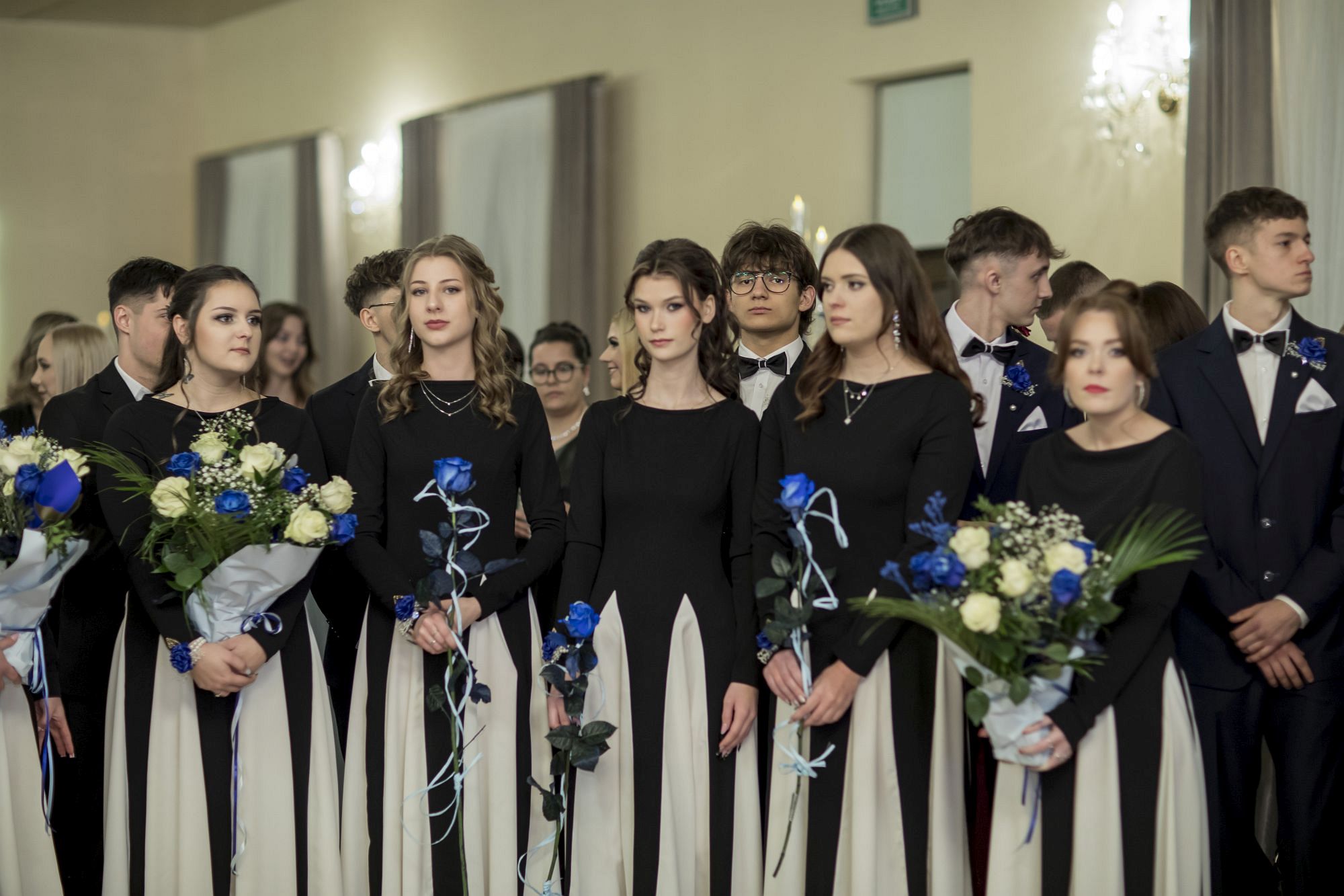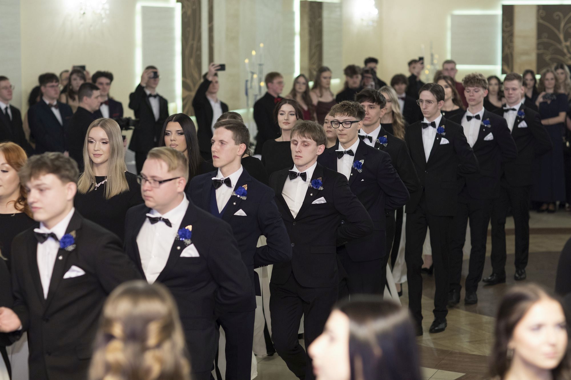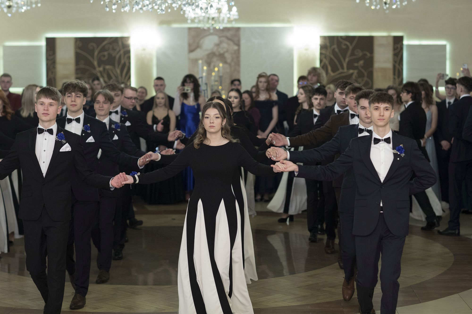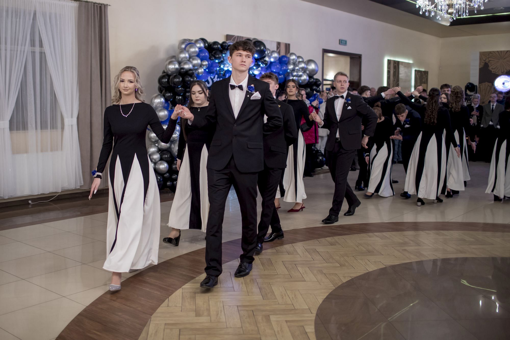 Po słowach Pani Dyrektor „Poloneza czas zacząć” nastąpił najbardziej wzruszający i podniosły moment balu studniówkowego. Polonez w wykonaniu uczennic i uczniów zachwycił pięknym układem, perfekcyjnym wykonaniem i eleganckimi strojami. Za przygotowania do poloneza prowadzący podziękowali Pani Dorocie Karolak.