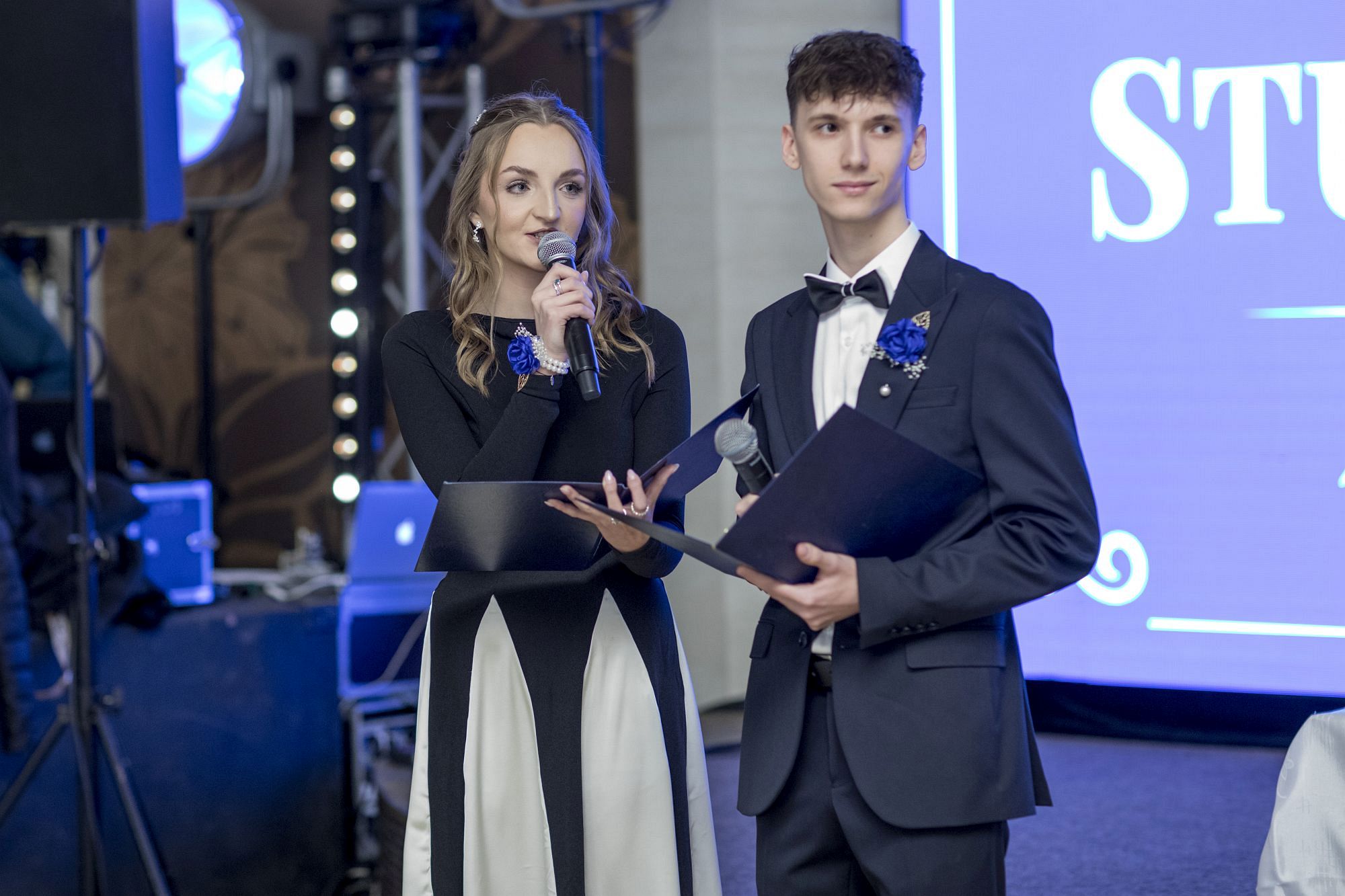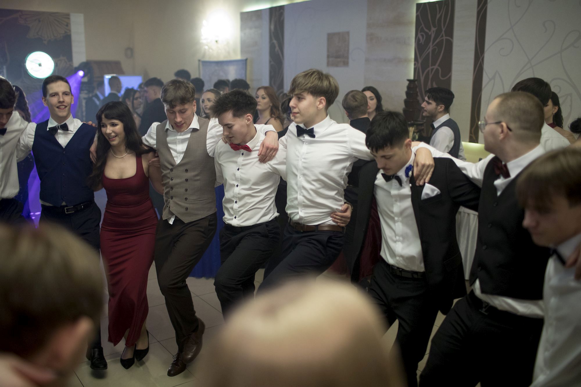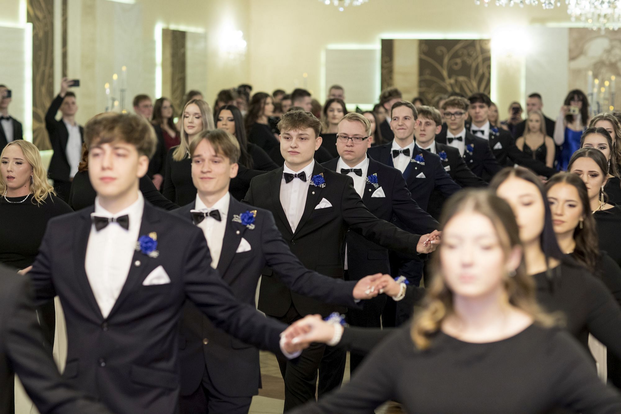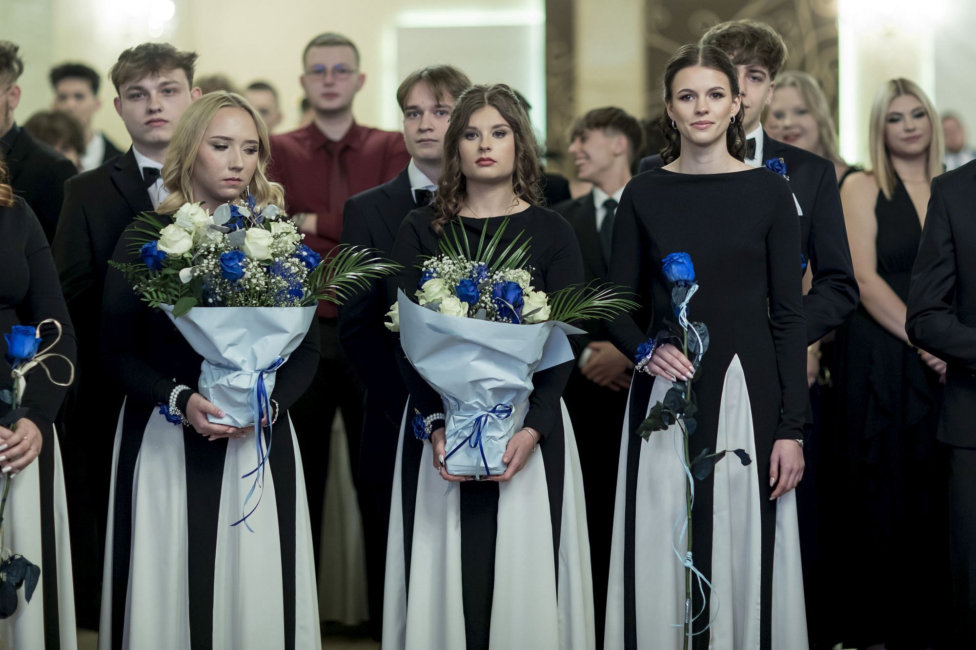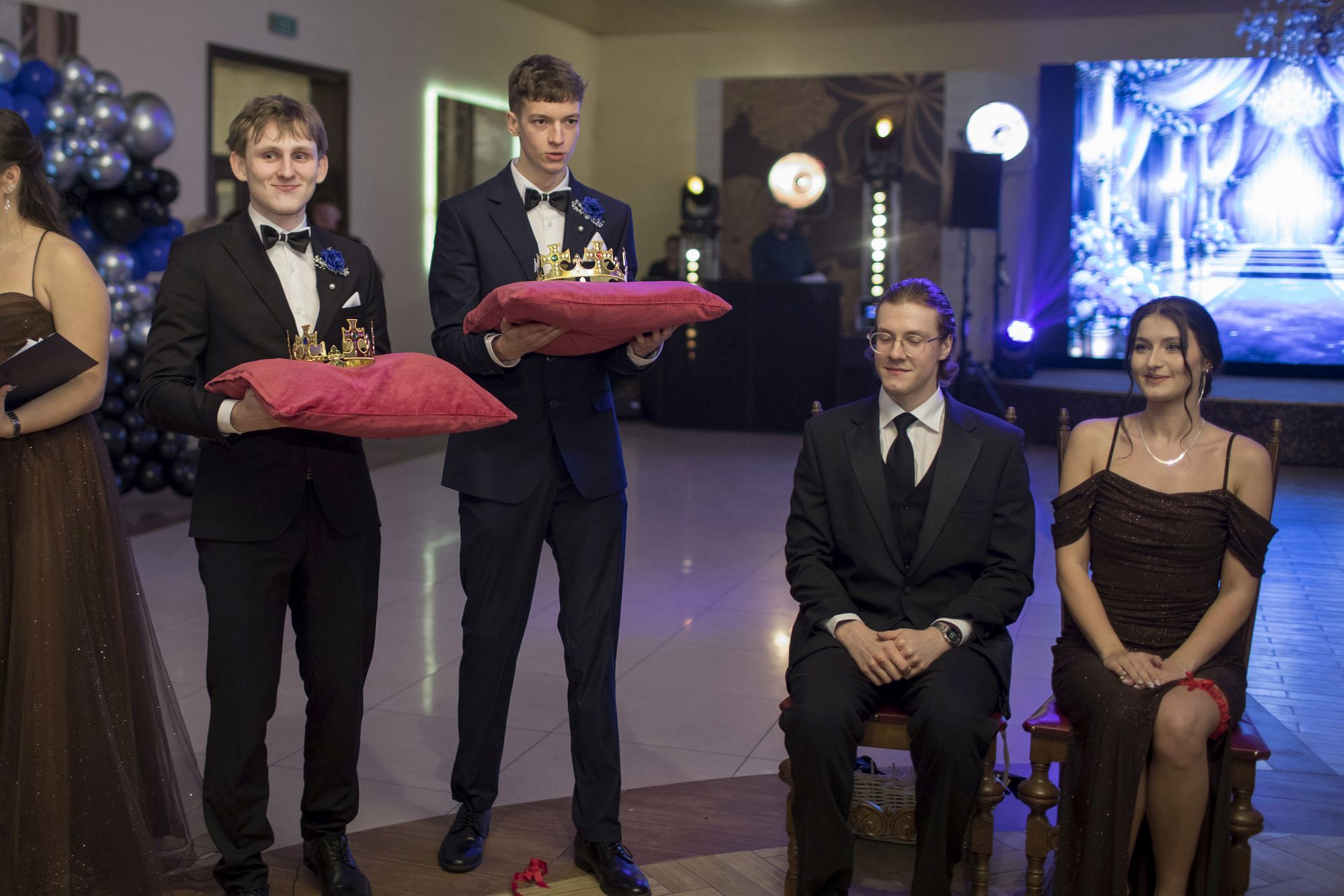 Na maturzystów i zaproszonych gości czekało jeszcze wiele innych atrakcji. Podczas przygotowanego przez uczniów programu studniówkowego przenieśliśmy się za kulisy walki o tron na Cezakowym Zamku, poznaliśmy też Królową i Króla Balu: Monikę Drewnowską z klasy V TFR i Natana Stachowskiego z klasy V T. Z ich inicjatywy dyrekcja, wychowawcy oraz nauczyciele otrzymali na znak wyróżnienia symboliczne szarfy i tytuły. Przedstawienie zakończyło się żywiołowym tańcem wszystkich aktorów do utworu Jesień – Tańcuj z Chłopów (jak na maturzystów przystało).