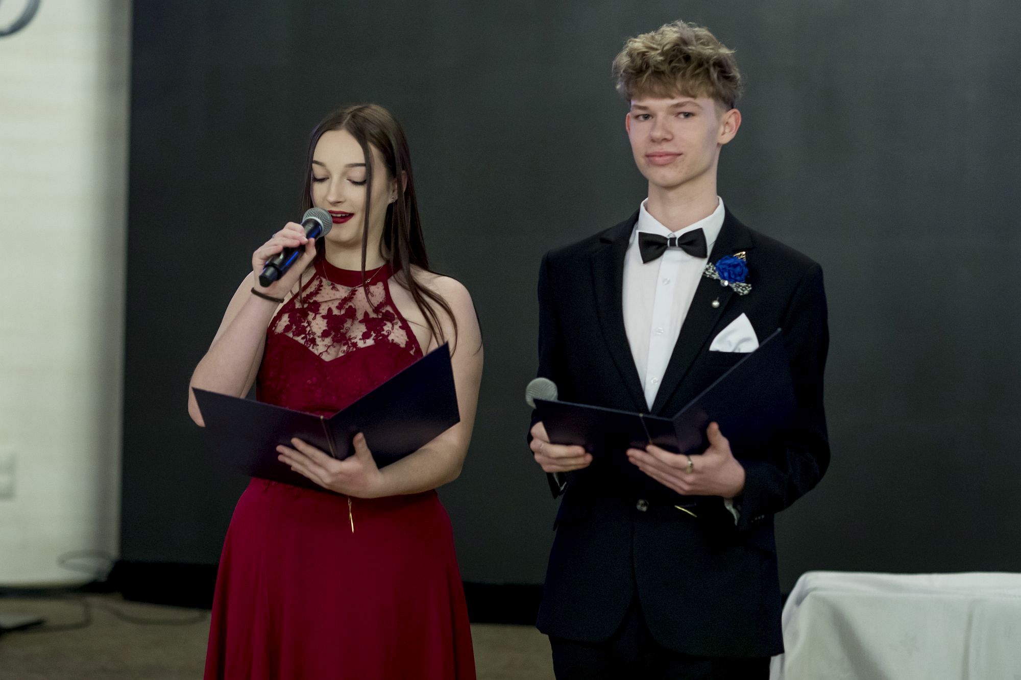W części oficjalnej, prowadzonej przez Darię Drzewiecką z klasy V TFR i Kacpra Jęczkowskiego z klasy V TEC, padło wiele ciepłych słów i podziękowań pod adresem dyrekcji szkoły, wychowawców, nauczycieli i rodziców. Życzenia dla maturzystów złożyli: Pani Dyrektor Marzena Kordyl-Kołata, zaproszeni goście: Prezydent Miasta Zgierza Pan Przemysław Staniszewski oraz Wicestarosta Powiatu Zgierskiego Pan Sebastian Dunin, a także reprezentanci klas młodszych: Wiktoria Pinkowska z klasy IV TEG i Jan Jędrzejczak z klasy III TEC. W imieniu rodziców, organizatorów i gospodarzy tego wyjątkowego wydarzenia głos zabrała Pani Edyta Drzewiecka – Przewodnicząca Rady Rodziców.
