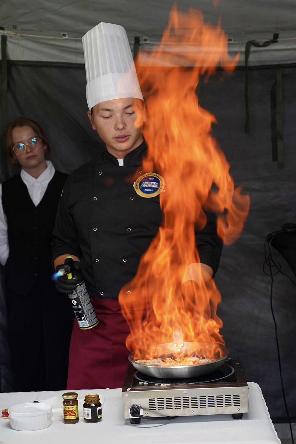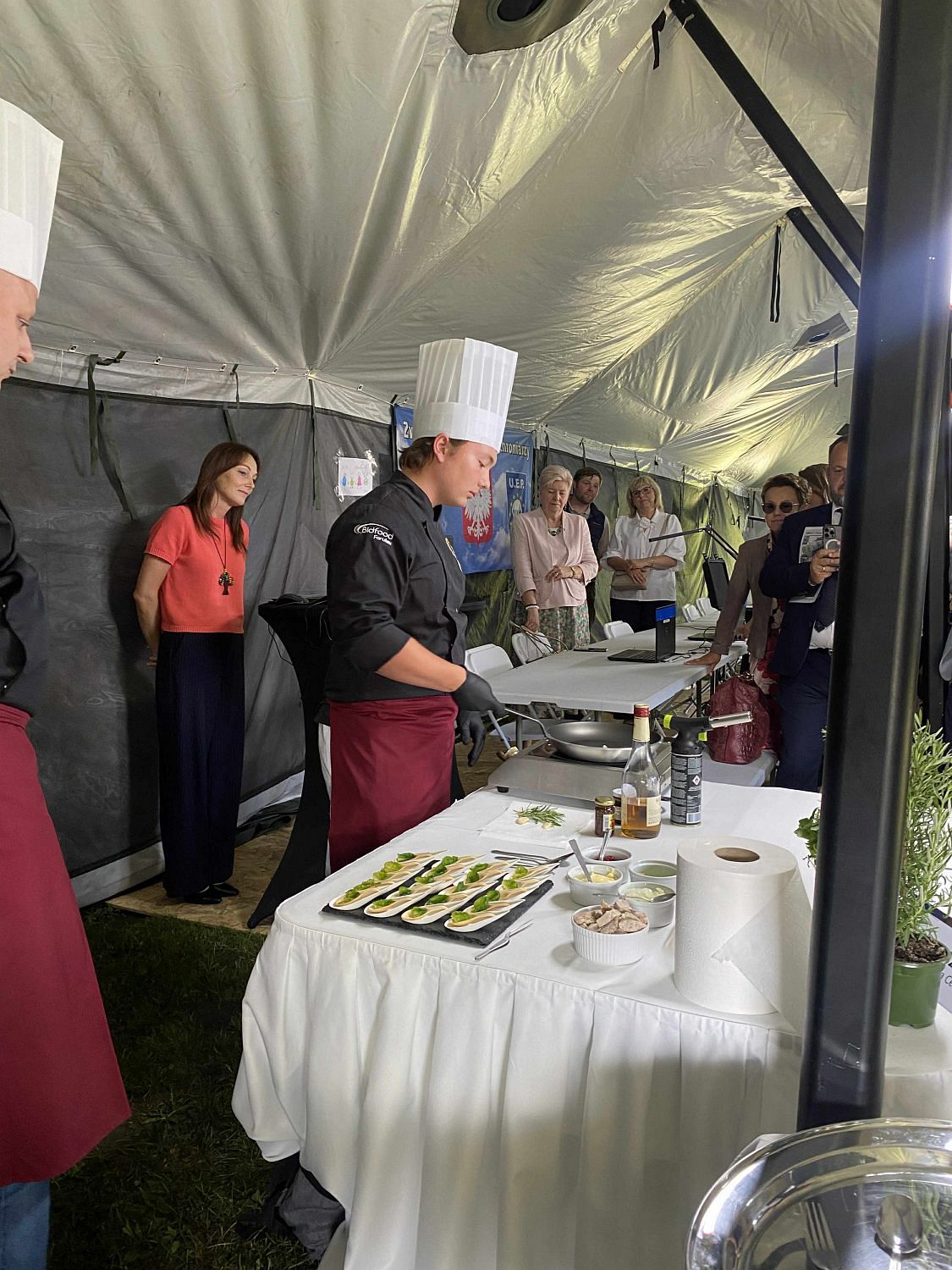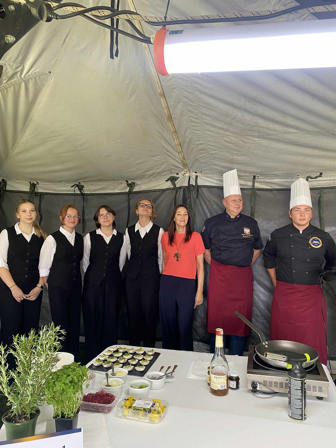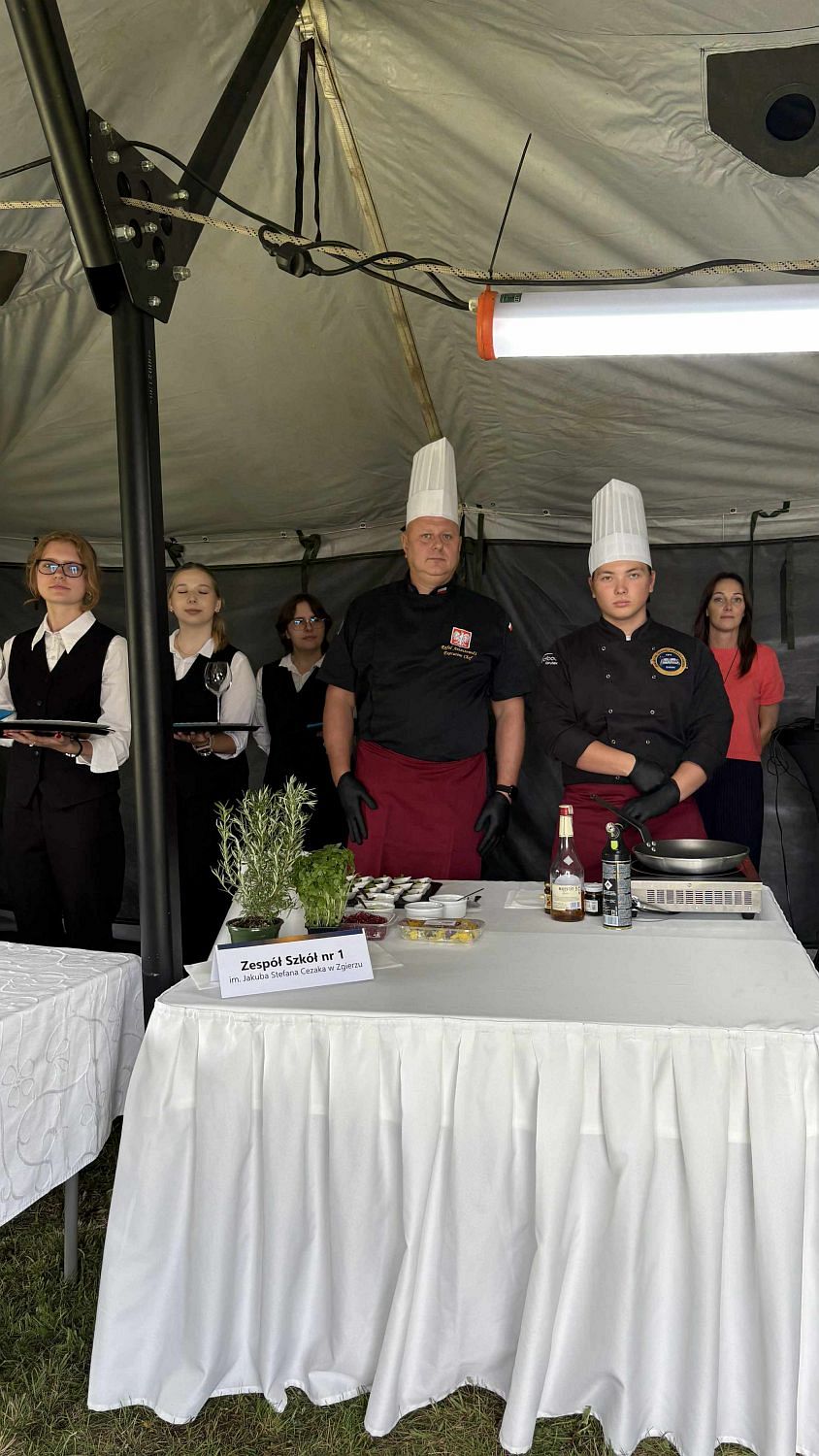 Natomiast pod względem kulinarnym uczestników zachwycił Jan Piech – czwartoklasista z oddziału o profilu gastronomicznym. Wraz ze swym mistrzem panem Rafałem Antoszewskim przygotował on nietuzinkową przekąskę – grasicę flambirowaną w koniaku, serwowaną w jadalnej łyżeczce z ciasta kruchego z dodatkiem świeżego granatu. Wrażenia dopełniła dekoracja świeżym bratkiem.