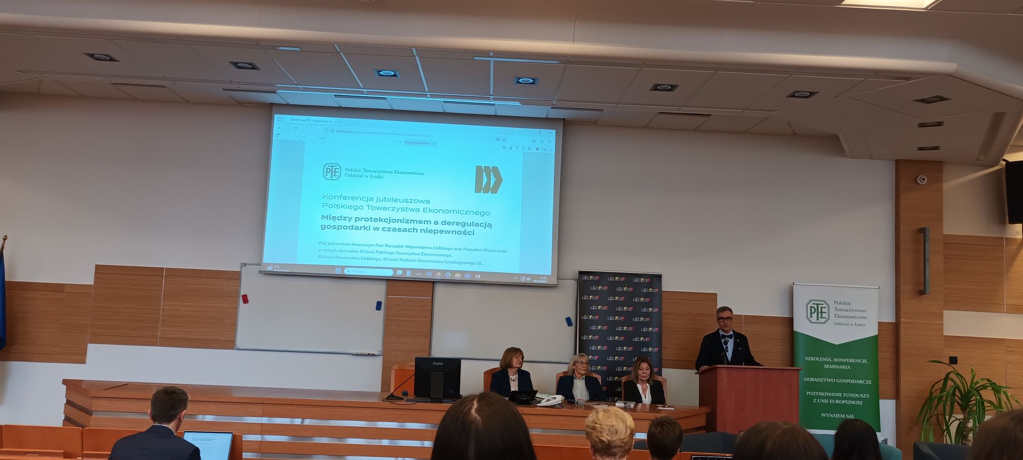 9 października 2025 r. uczniowie trzeciej i czwartej klasy ekonomicznej wraz z opiekunkami: Panią Ewą Kawczynską i Panią Ewą Urbańską-Sobczak wybrali się na Wydział Ekonomiczno-Socjologiczny Uniwersytetu Łódzkiego, by uczestniczyć w wyjątkowym wydarzeniu – jubileuszowej konferencji Polskiego Towarzystwa Ekonomicznego Oddział w Łodzi. Konferencja została zorganizowana pod patronatem honorowym Pani Marszałek Województwa Łódzkiego oraz Pani Prezydent Miasta Łodzi w ramach obchodów 80-lecia Polskiego Towarzystwa Ekonomicznego, 80-lecia Uniwersytetu Łódzkiego, 60-lecia Wydziału Ekonomiczno-Socjologicznego UŁ. Temat konferencji: „Między protekcjonizmem a deregulacją gospodarki w czasach niepewności” nawiązywał do tematu bieżącej Olimpiady Wiedzy Ekonomicznej. Ze względu na wagę tego wydarzenia nie mogło zabraknąć uczniów naszej szkoły.