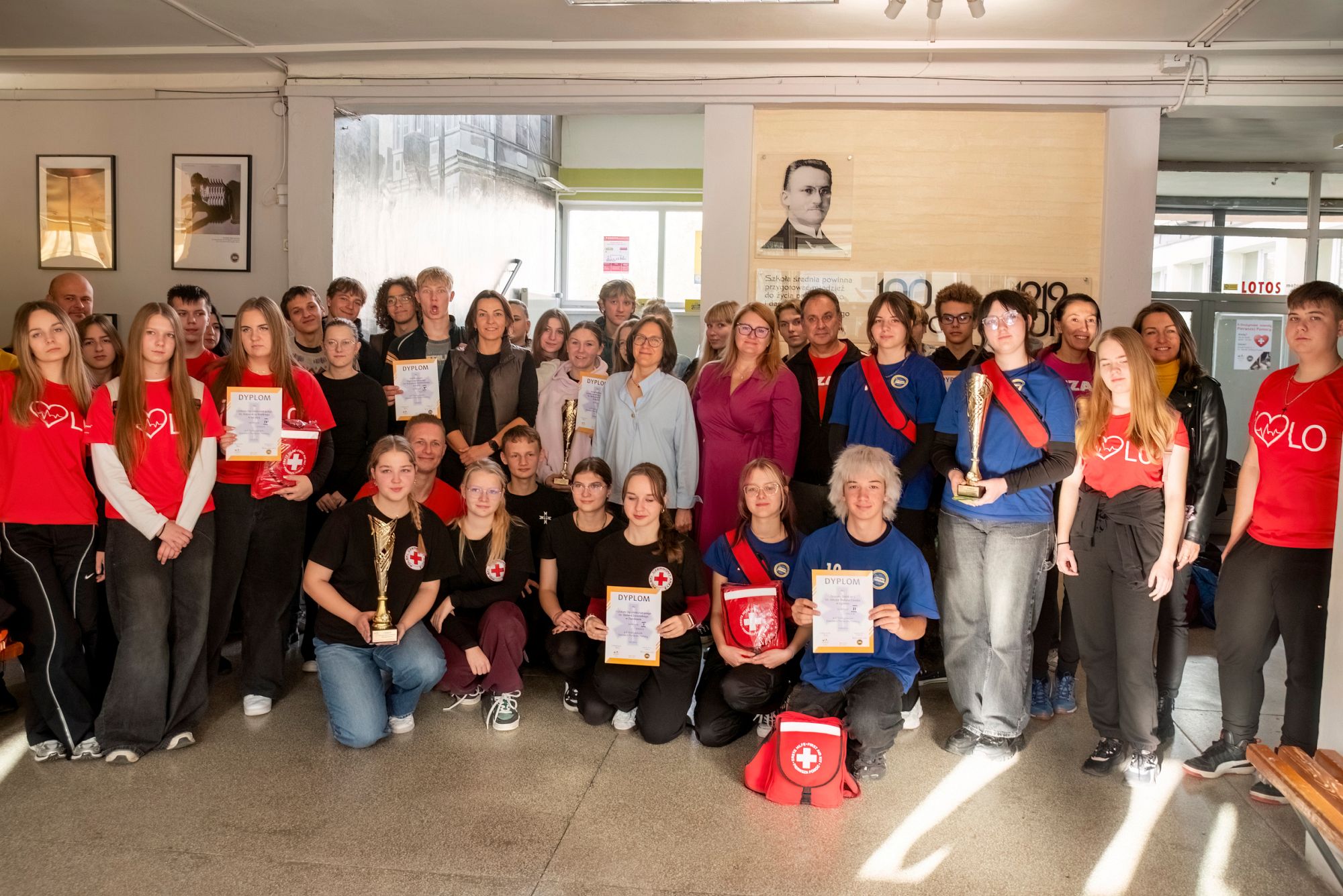 W środę 29 października w naszej szkole odbyły się zawody w udzielaniu pierwszej pomocy. Wzięły w nich udział zespoły ze szkół ponadpodstawowych powiatu zgierskiego: I LO z Ozorkowa, Samorządowego LO ze Zgierza, Zgierskiego Zespołu Szkół Ponadpodstawowych, Zespołu Szkół nr 1 ze Zgierza oraz XXXIV LO z Łodzi i I LO z Łęczycy. Drużyny rywalizowały na przygotowanych stacjach urazowo-wypadkowych oraz rozwiązywały test z zakresu pierwszej pomocy.