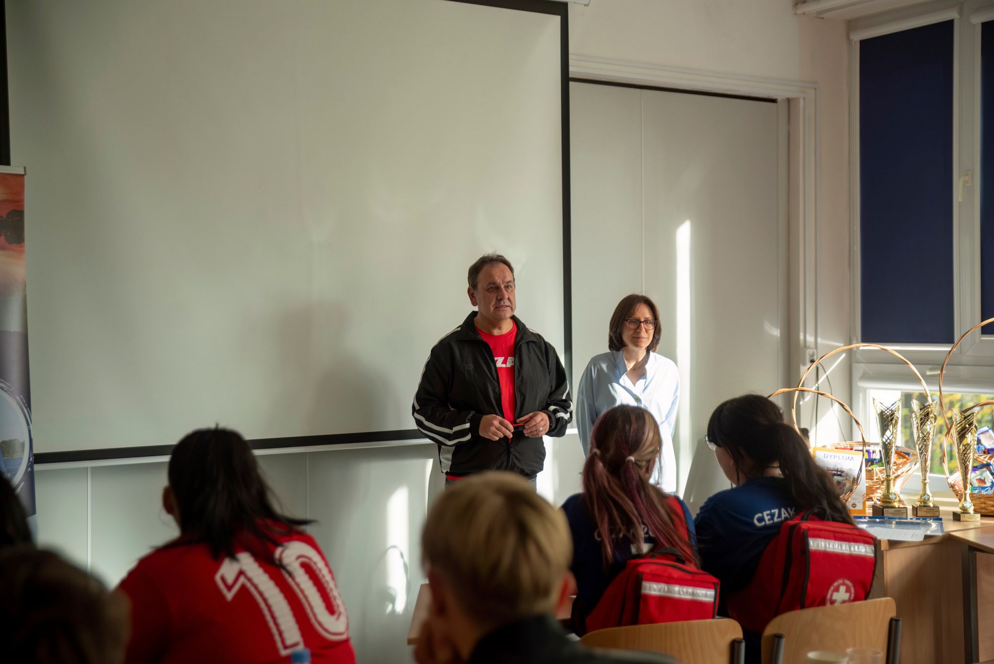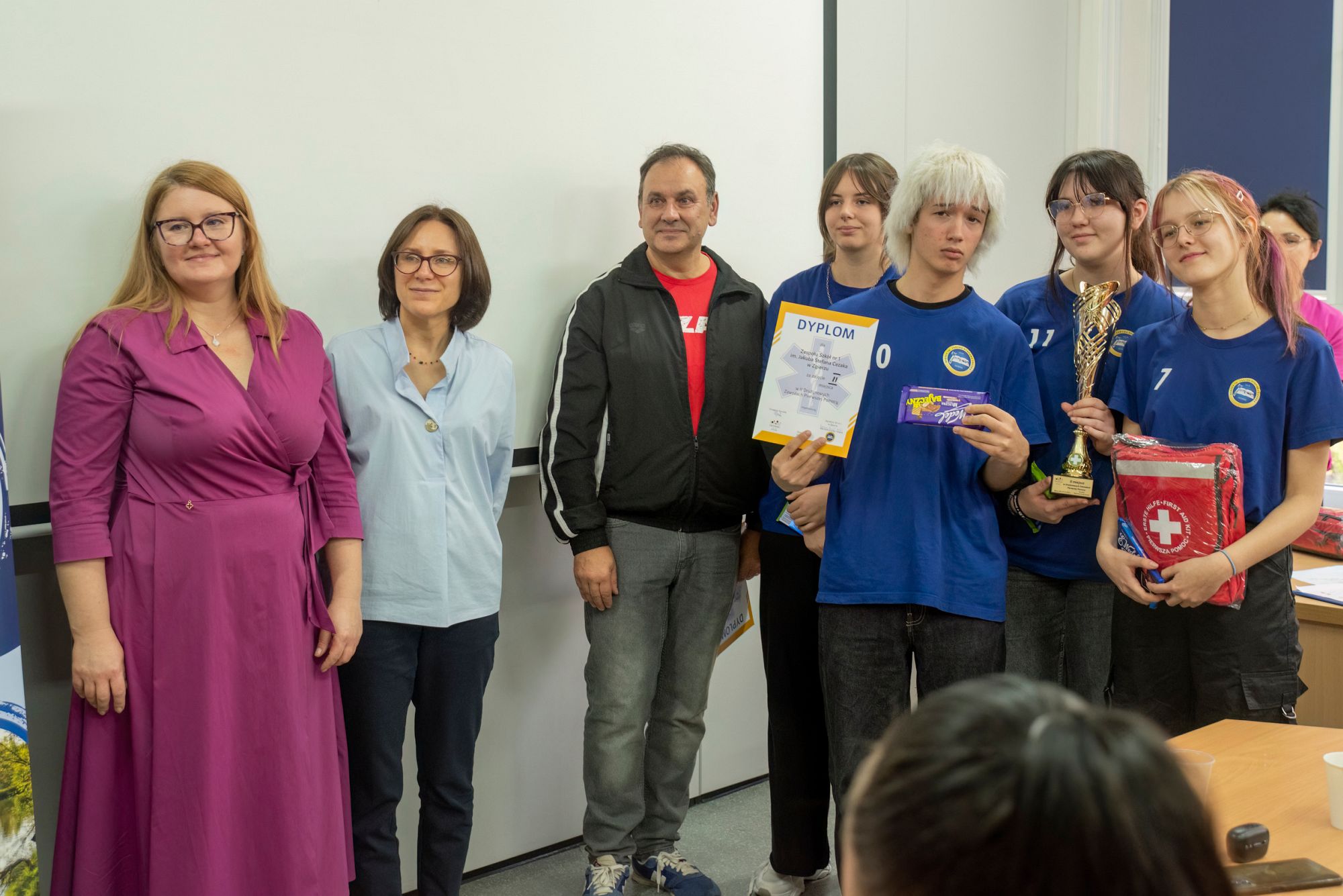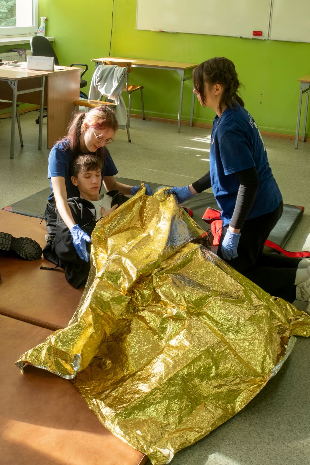 W wydarzenie zaangażowali się wolontariusze z naszej szkoły, którzy przygotowali stacje urazowo-wypadkowe, odegrali rolę poszkodowanych, przygotowali materiały promujące zawody (plakat, dyplomy) oraz słodki poczęstunek dla wszystkich uczestników.