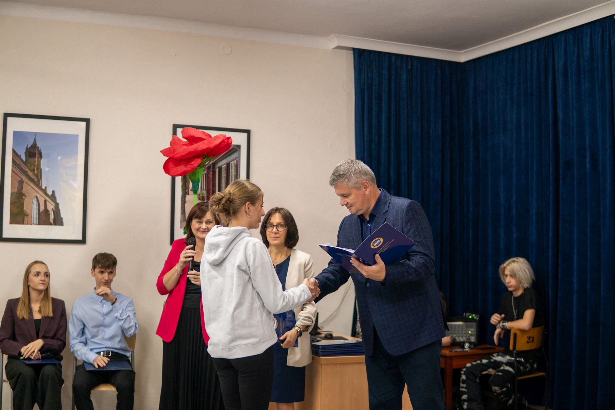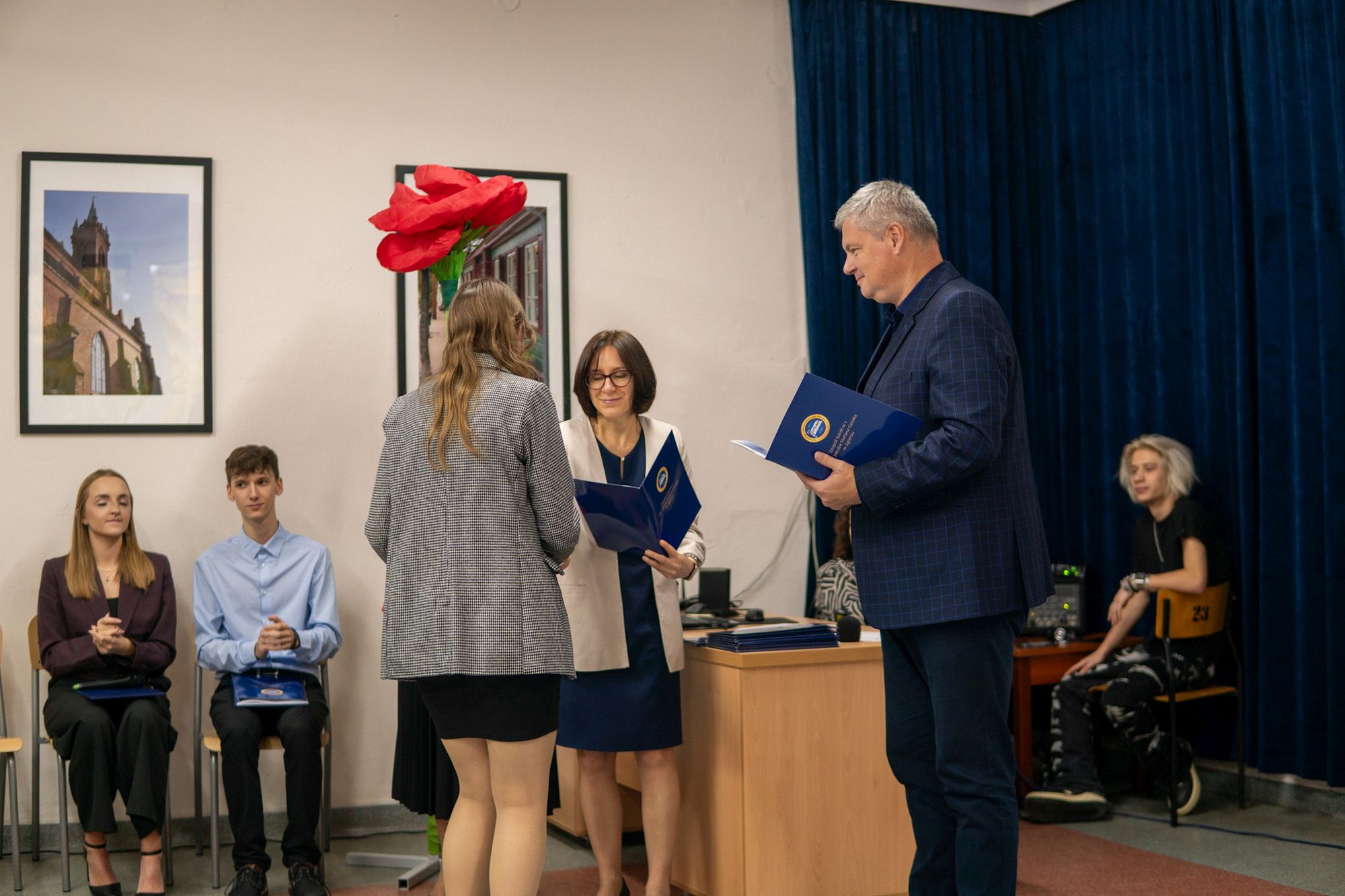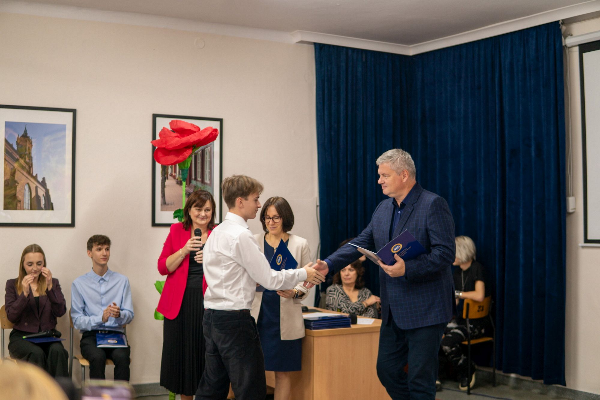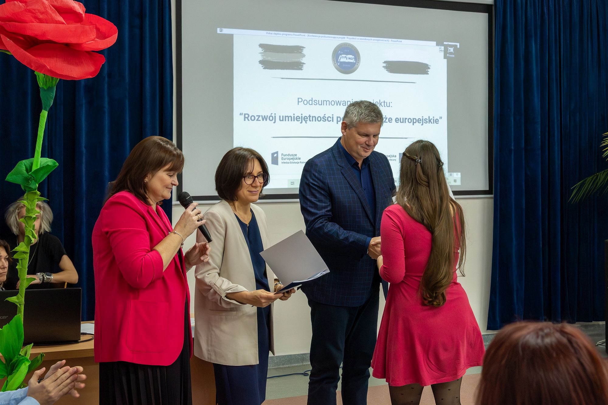Podczas uroczystej części spotkania uczniowie otrzymali certyfikaty potwierdzające odbycie stażu. Dyrekcja szkoły skierowała do uczestników słowa uznania i gratulacje, podkreślając, że ich zaangażowanie i postawa stanowią doskonały przykład dla młodszych kolegów.