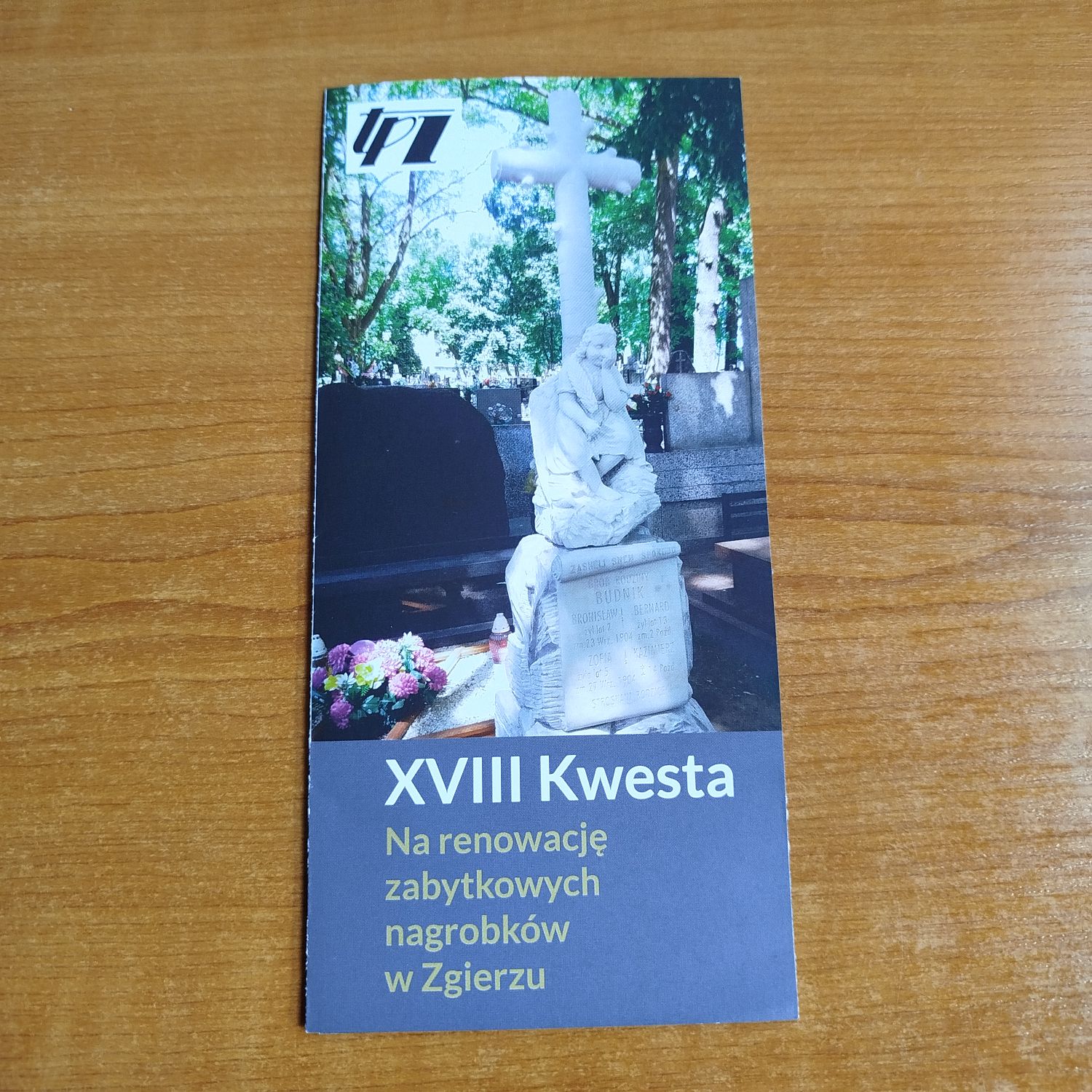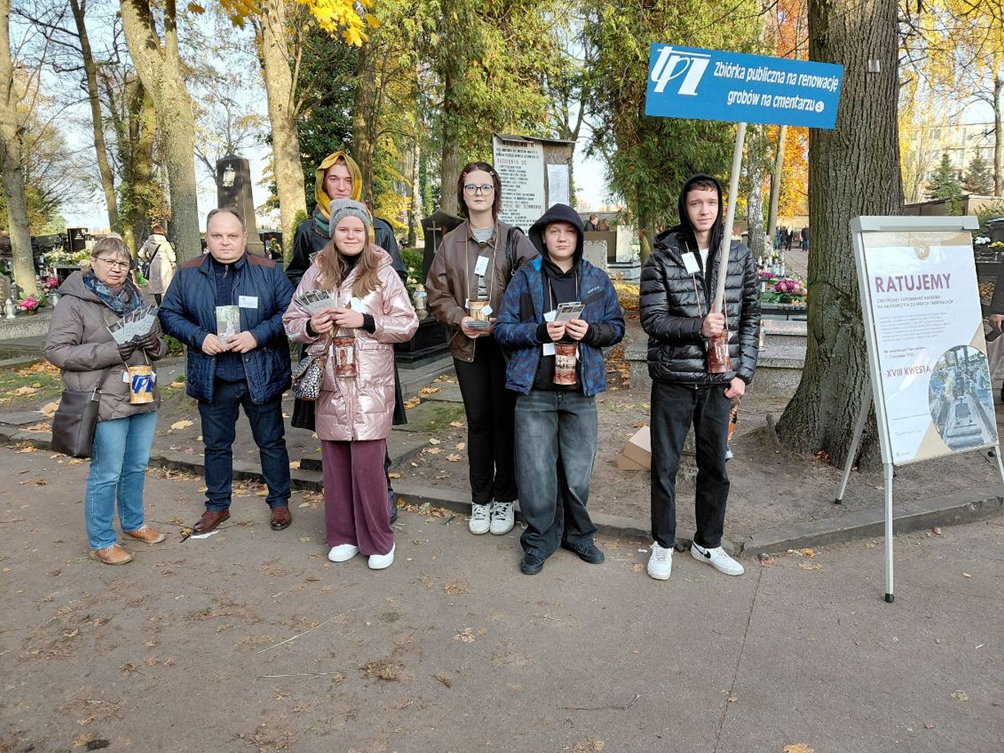 Jak co roku, 1 i 2 listopada — w dniu Wszystkich Świętych oraz Dzień Zaduszny — odbyła się na zgierskich cmentarzach XVIII kwesta na rzecz renowacji zabytkowych nagrobków. To wyjątkowy czas, kiedy nasza pamięć o zmarłych łączy się z troską o dziedzictwo kulturowe i wspólne dobro. W akcji, organizowanej przez Towarzystwo Przyjaciół Zgierza, uczestniczą: wolontariusze, członkowie stowarzyszeń, samorządowcy, ludzie kultury, duchowni, a przede wszystkim uczniowie wraz z opiekunami. My i tym razem wzięliśmy w niej udział, choć nieco w symbolicznym wymiarze. Był to Hubert Drąszczyk 4T z p. Agatą Tołłoczko.